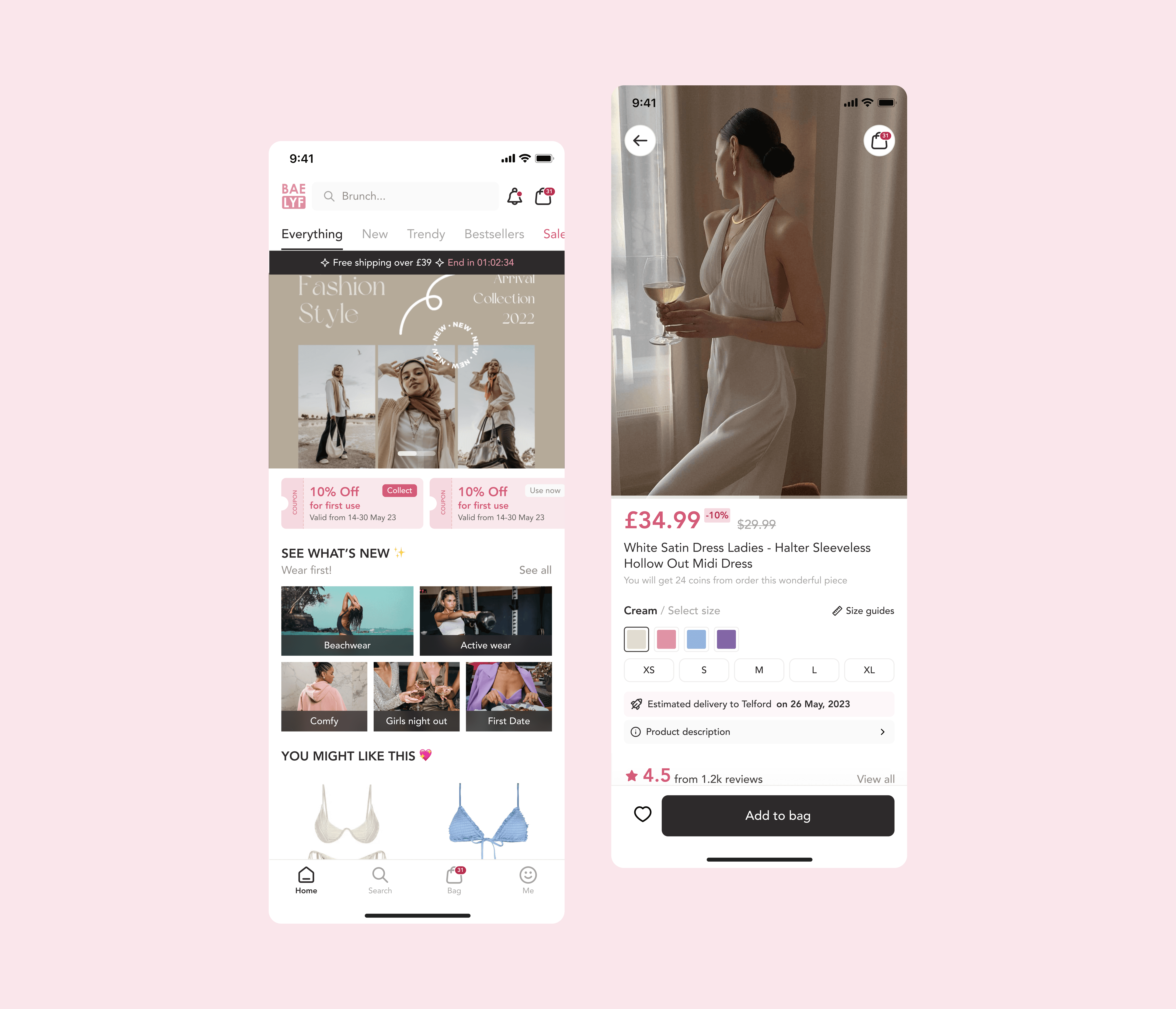 A clothing e-commerce mobile app designed with a friendly vibe, embracing the spirit of a girlhood community to make all customers feel at home and comfortable.